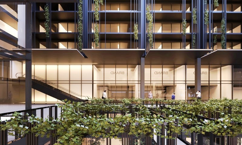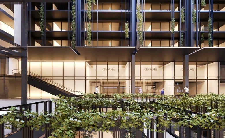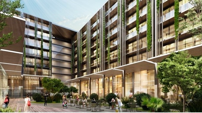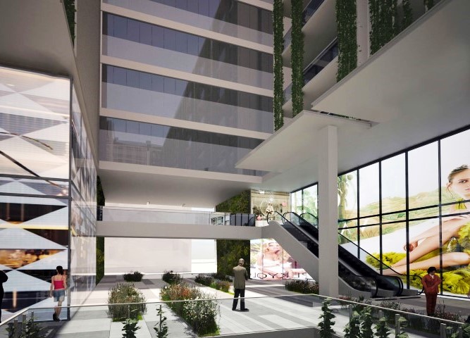 The project contains a commercial mall of 54 shops and 18 restaurants and cafes