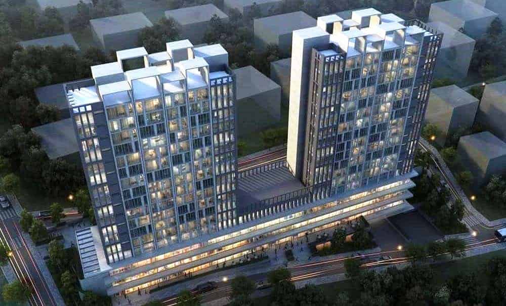 The project consists of one building, with an area of 5000 square meters, 17 floors, 3 floors for parking lots, a total of 228 units, 36 offices, and two commercial units with a total of 4000 square meters.