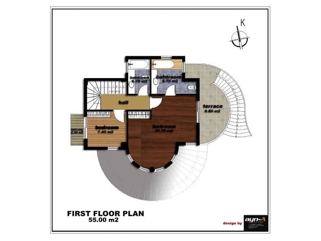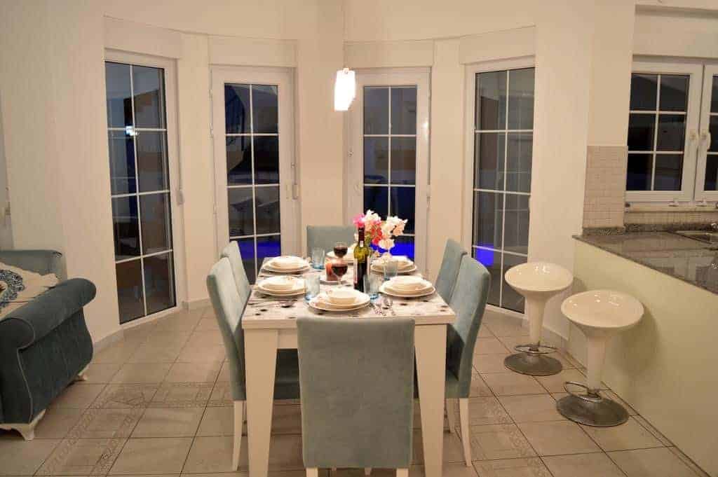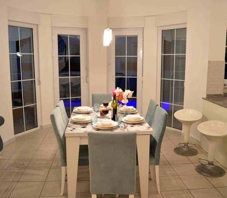 The ground floor consists of a living room with an open plan kitchen and a guest toilet. There are two bedrooms on the first floor, a master room with a private bathroom and a jacuzzi, a children's room with an attached bathroom. There are 3 balconies with stunning views of a lush garden and swimming pool as well as wonderful golf courses within the Belek area. All rooms have air conditioners, all bathrooms are equipped with first class units, there is a full range of kitchen furniture plus white goods. The floors on the floors are ceramic and PVC windows