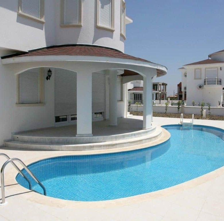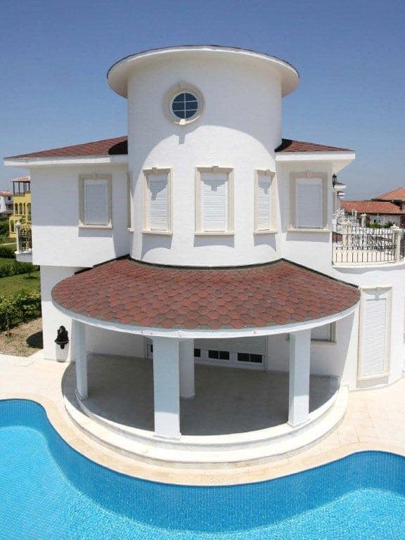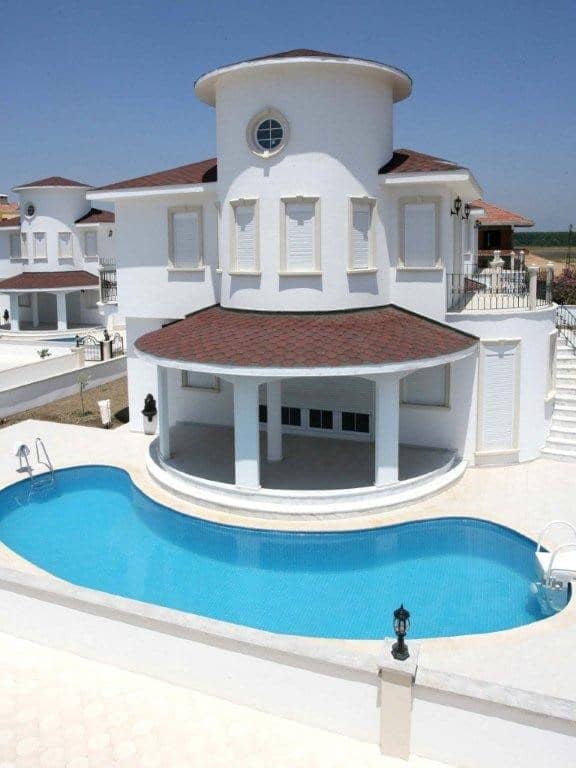 Detached villa for sale in Belek Antalya within a server complex, with swimming pool, garden, parking, security and 50% less than the actual price