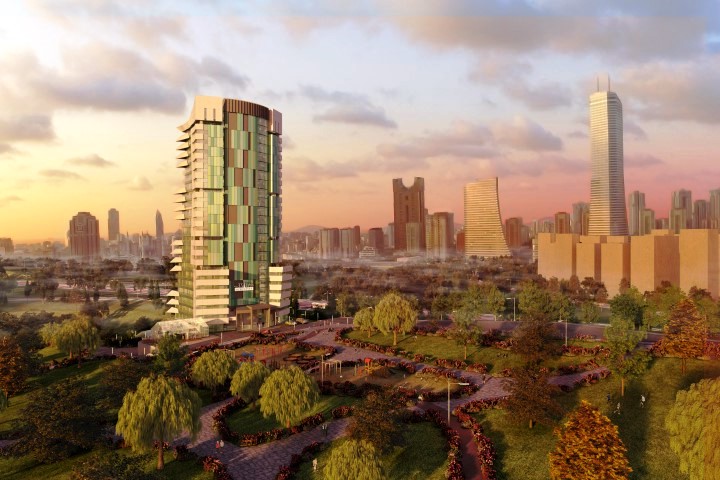 يتالف المشروع من بلوك واحد يحوي على 22 طابق , و 180 وحدة سكنية ,تشطيبات الشقق عصرية حيث تتميز غرف المعيشة بنوافذ ضخمة تسمح بدخول ضوء الشمس. مع بلكونات مطلة على المدينة المالية و الحدائق .