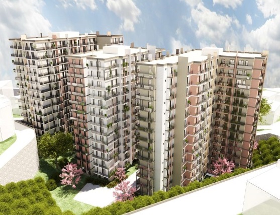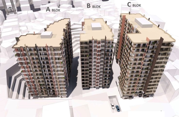 مساحة المشروع: 7.000 م 2 ,عدد الكتل: 3 ,عدد الشقق: 480 ,عدد الطوابق: 13