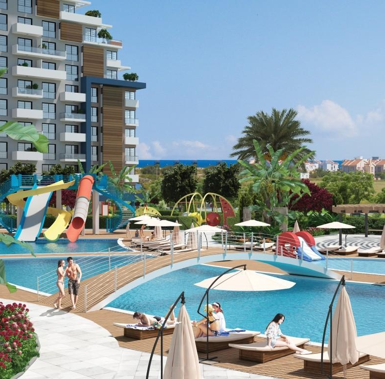 شقق للبيع في قبرص التركية في منطقة لونغ بيتش – إسكله، وهي من أسرع المناطق نمواً في سوق العقارات في شمال قبرص، حيث يقع المجمع السكني بالقرب من الشاطئ ويوفر فرصة استثمارية مميزة.