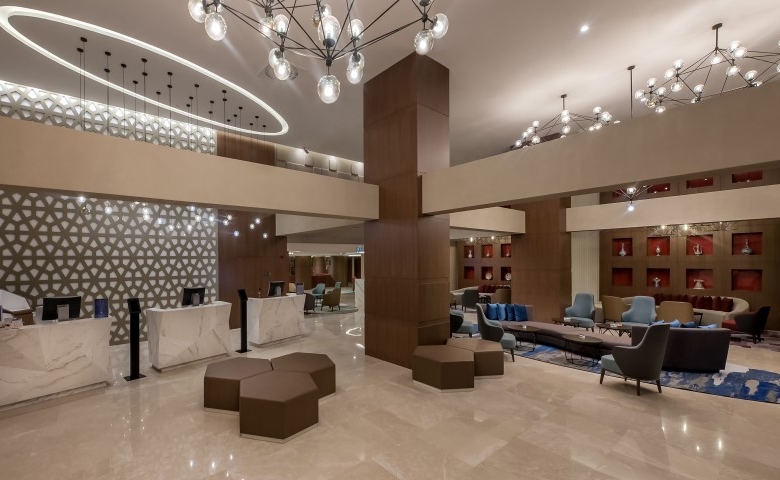 - بهو استقبال مجهز بأفخم تصاميم الأثاث والمطاعم، حيث تتميز أجوائه بإطلالة مميزة على حديقة ساحرة