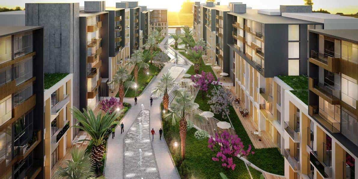 يتكون المشروع من 9 كتل 391 شقة و 33 محل تجاري موزعة على مساحة 20.000 متر مربع مع 1 + 1 و 2 + 1. يتم تزويد جميع الشقق بمرافق المطبخ كاملة بما في ذلك الفرن ، ساحب الروائح ، غسالة الصحون ، تمديدات الغاز الطبيعي