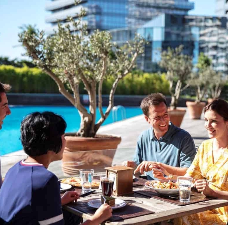 108.000 متر مربع من المناظر الطبيعية ، 3 مراكز لياقة بدنية داخلية ، 3 حمامات سباحة داخلية ، 3 حمامات سباحة خارجية ، مطعمان ، 3 ملاعب للأطفال بمساحة إجمالية قدرها 1.500 متر مربع