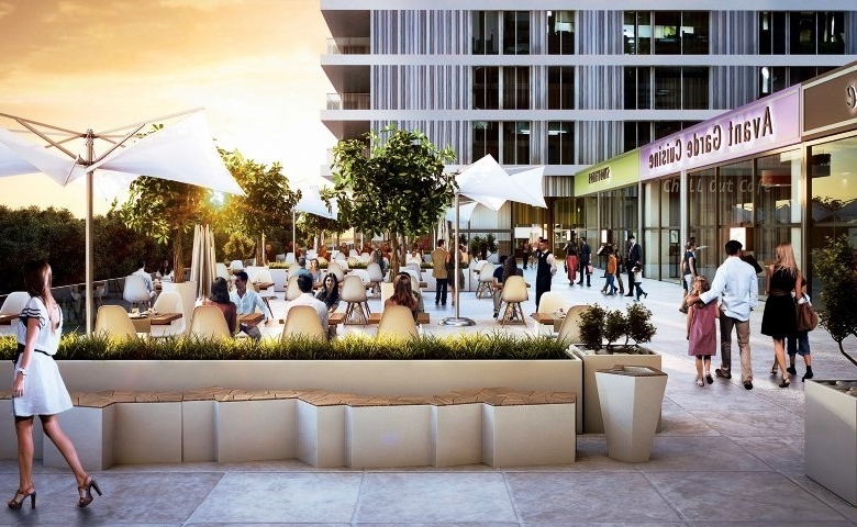 - مساحات تجارية في الطوابق السفلية تشمل متاجر ومناطق لتناول الطعام.