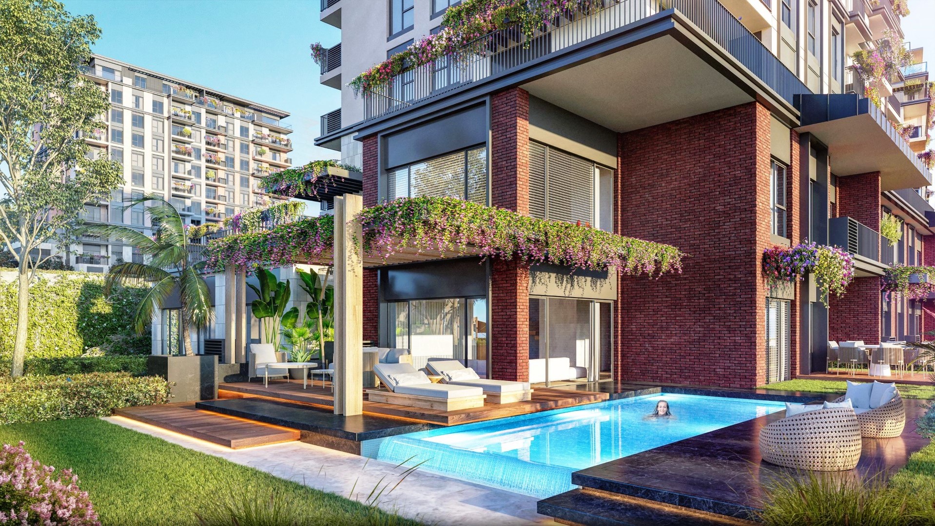 يوفر جميع وسائل الراحة و يلبي كافه الاحتياجات اليومية حيث ان المشتري يستفاد من الأمن و الخدمات الفندقية ، ولمسابح و الحمامات ، الجاكوزي ، مساج ، صالة رياضة ، كافيهات و مطاعم ، لوبي فخم .