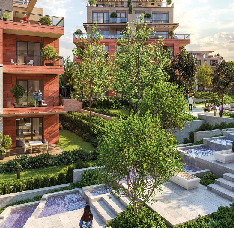 - الطبيعة والمساحات الخضراء: استمتع بمساحة 11,600 م² من المساحات الخضراء المليئة بأشجار الزيزفون والزيتون لتوفير نمط حياة هادئ.