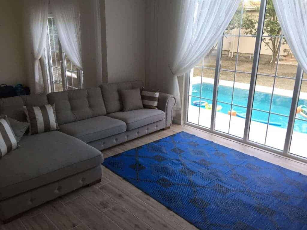 كل فيلا تتالف من اربع غرف و صالة مساحة 210 متر مربع ,4 حمامات على ارض مساحتها تتراوح بين 520 الى 800 متر مربع