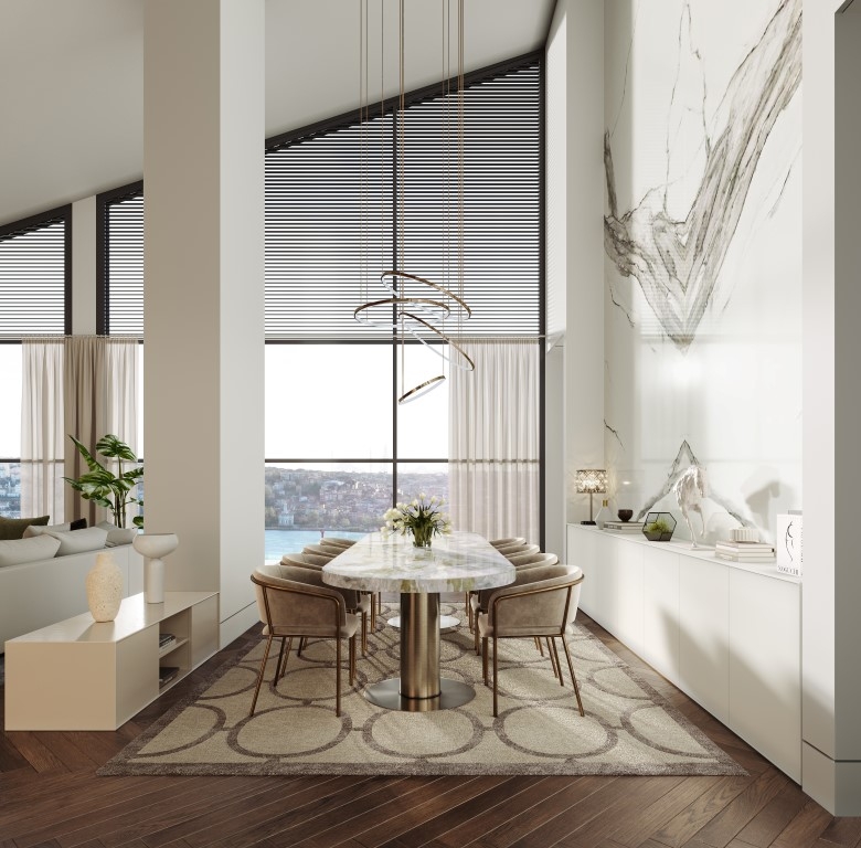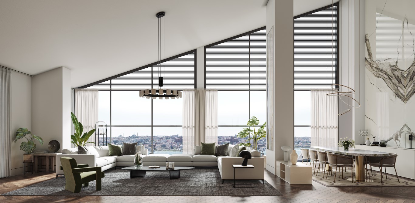 - تصميم فاخر: نوافذ ممتدة من الأرض إلى السقف بإطلالات بانورامية على القرن الذهبي.