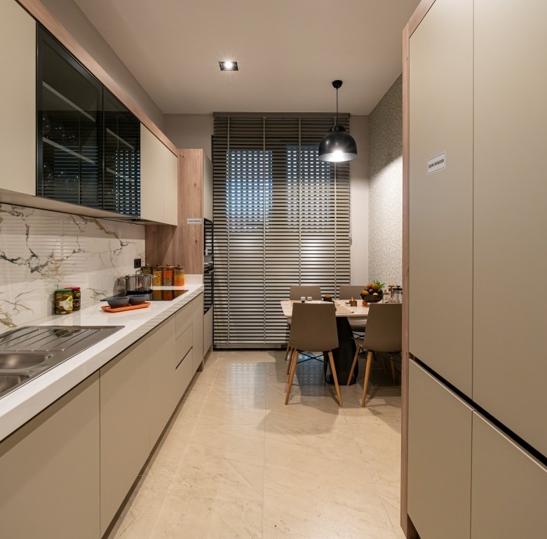 مطابخ بخزائن مخصّصة وزجاج تحكم شمسي