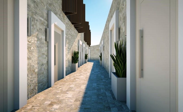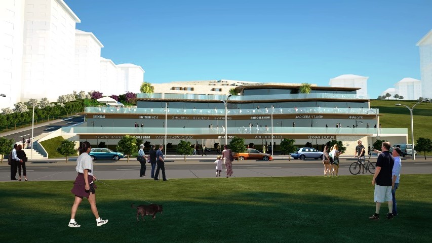 على ارض مساحة 8000 متر مربع , و يحوي على 62 فيلا متصلة , و 15 محل تجاري
